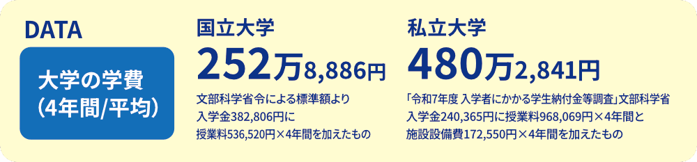 大学だとそれがもっと高くなり、私立大学だと4年間で480万円以上。